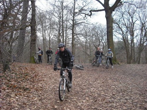 Dimanche 23 janvier, à 9h38, avec huit autres grimpeurs on s’est retrouvé gare de Lyon,sur le quai du RER D, les chaussons troqués contre des VTT Giant loués à « Vélosympa » (dans le XIème). Et on a pris le train Zuco, en direction de Melun pour rejoindre Jean Jacques l’instigateur de « la journée initiation VTT ». A 10 heures, tout le monde était au rendez vous à la gare de Yerres… ou presque…Une megane blanche conduite par un homme à casquette nous rejoignit une demi heure plus tard…