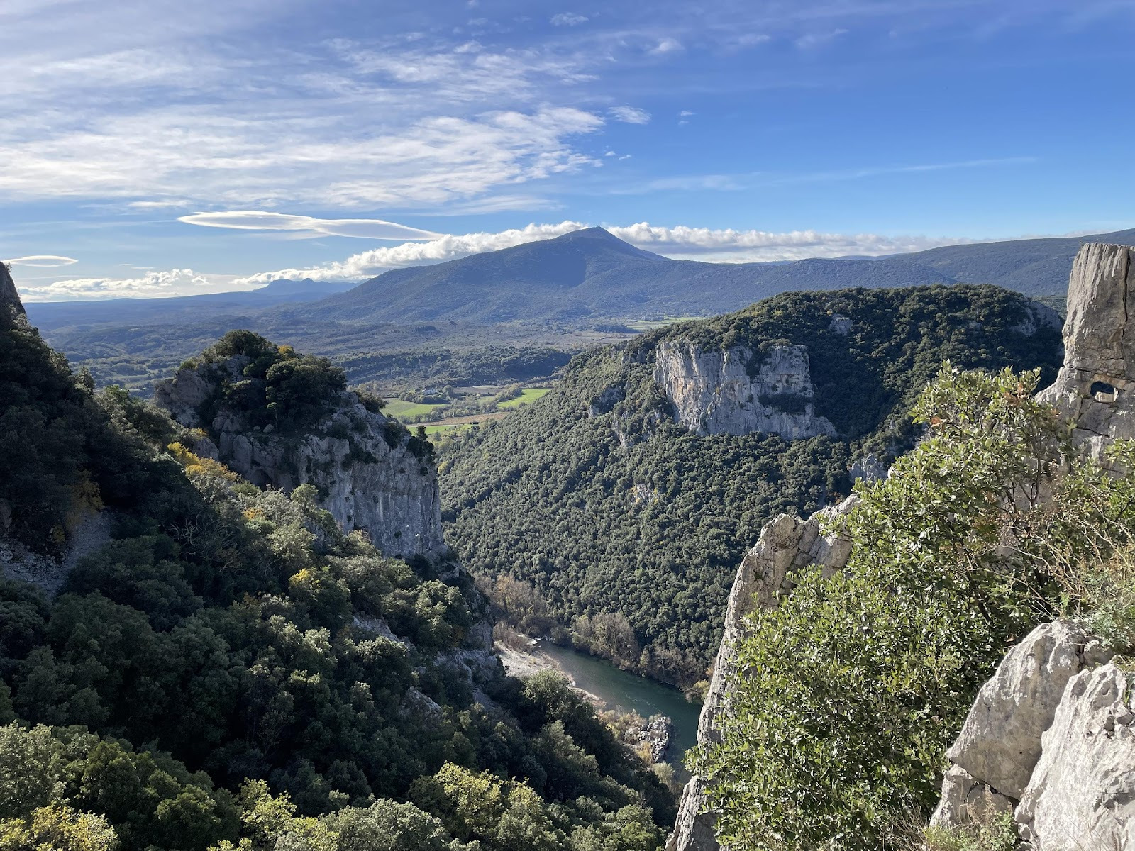 Nous étions 8 grimpeurs débutants et aguerris à fuir la grisaille parisienne pour profiter d’une fenêtre ensoleillée dans ce massif situé à 40 km au Nord de Montpellier. La chance nous a souri, le temps était splendide.